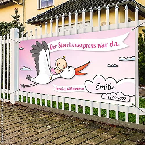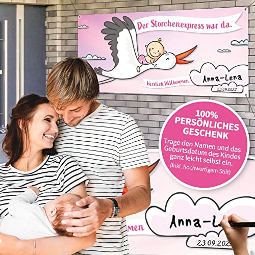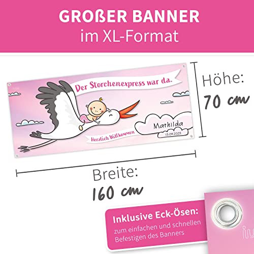 Details: XXL Banner SET zur Geburt Baby I Rosa I wetterfest I personalisierbar I inkl. Kabelbinder & Stift I 160 cm x 70 cm