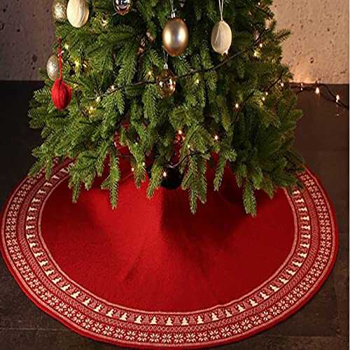Details: XLSRTDCY Weihnachtsbaum Rock Rot Weihnachtsbaumdecke Rund Gestrickter Christbaumständer für Frohe Weihnachten…