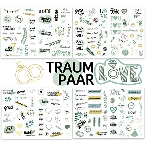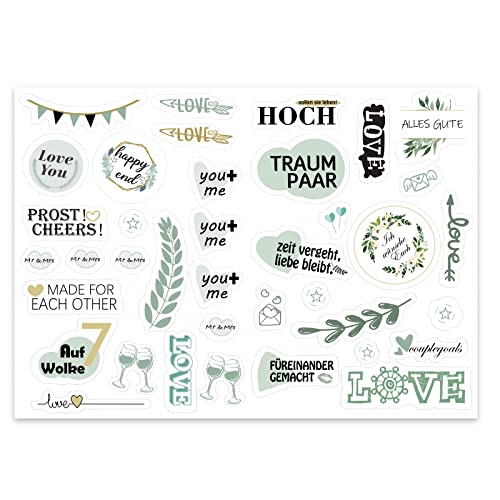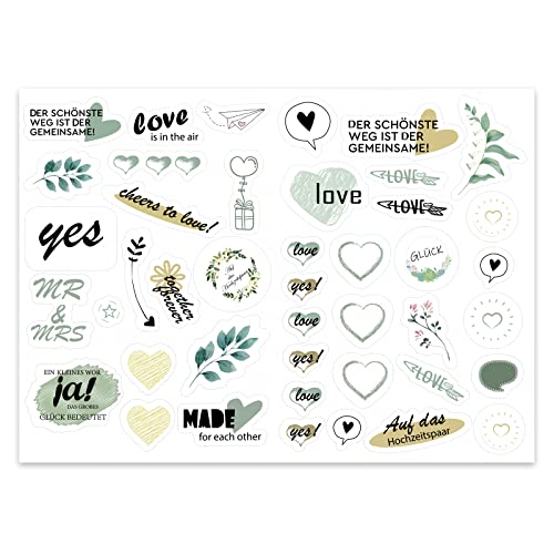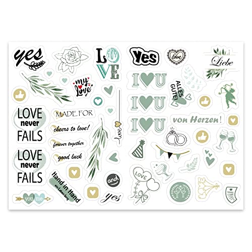 【Breites Anwendungsspektrum】 Mit den schönen Designs können diese süßen Hochzeitsaufkleber verwendet werden, um Ihre Hochzeitsgästebücher, Einladungsbriefe für Hochzeitsfeiern, Hochzeitssammelalben und Hochzeitsfotoalben zu dekorieren. Sie können sie auch verwenden, um Reisegepäck, Laptops, Mobiltelefone usw. für die Flitterwochen zu dekorieren. Geeignet für Hochzeiten, Verlobungsfeiern und Brautpartys.