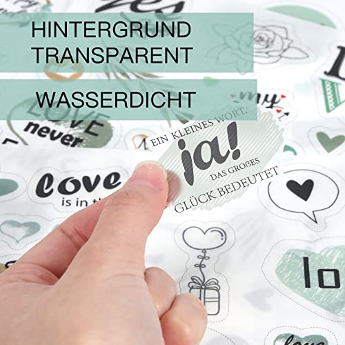 【High-End Materialien】 Diese langlebigen Hochzeits-Scrapbook-Aufkleber aus hochwertigem PVC verfügen über eine starke selbstklebende Klebrigkeit und sind wasserdicht. Und aufgrund der fortschrittlichen Schneidetechnologie lassen sie sich leicht abziehen und hinterlassen keine Rückstände.