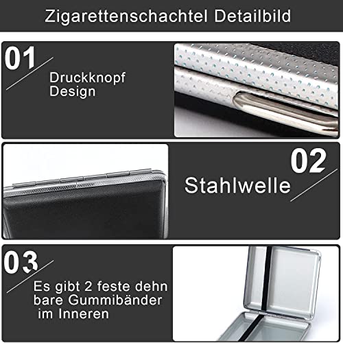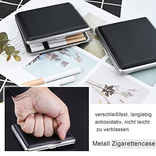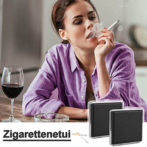 Details: Zigarettenetui, 2 Stück PU Zigarettenschachtel, mit Schnappverschluss Metall Zigarettencase für Hand Hosen, Schwarz