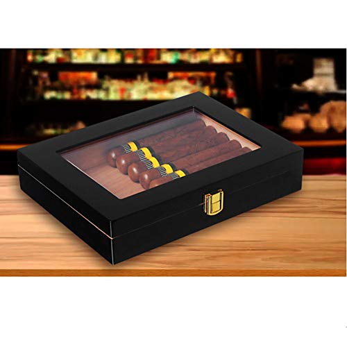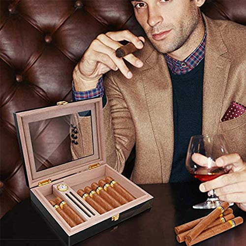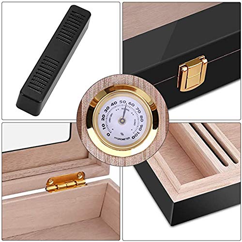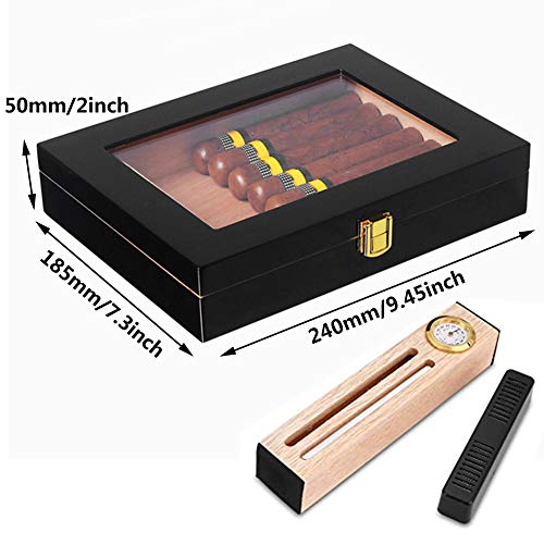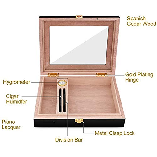 Humidor ist wartungsfreundlich und wird mit einem Zigarren-Hygrometer, einem Luftbefeuchter und einem abnehmbaren Zedern-Teiler geliefert. Zigarre Humidor Größe: 9,4 x 7,3 x 2 Zoll (extern)