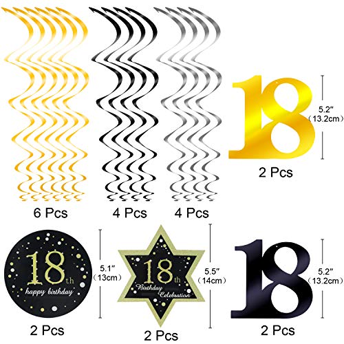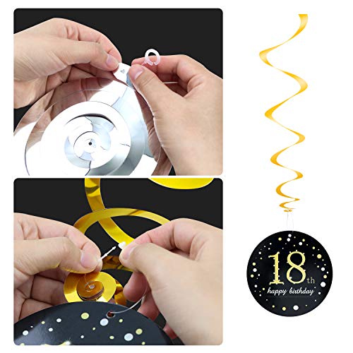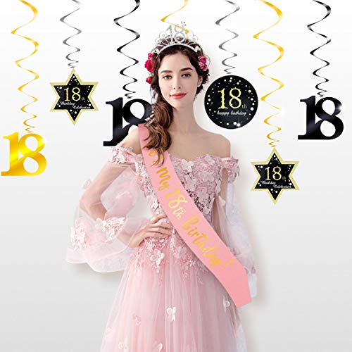 Lieferumfang: 18 Geburtstag Deko insgesamt 24PCS(22PCS Teile Spiral-Girlanden als Deckenhänger + 1PCS Geburtstag Schulter+1PCS Krone Haarreif Stirnband).